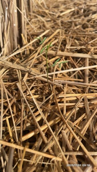 10月20日に播種した今年最後のヘアリーベッチが、元気に発芽してきました!小さな緑の芽が顔を出している様子を見ると、来年のお米づくりがもう始まっているんだなと実感します。